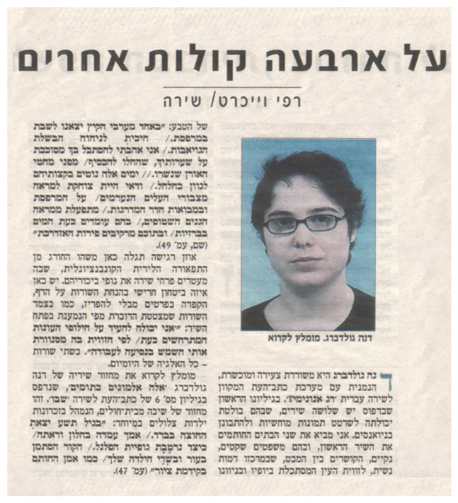 רפי וייכרט, על ארבעה קולות אחרים, מעריב 2001.